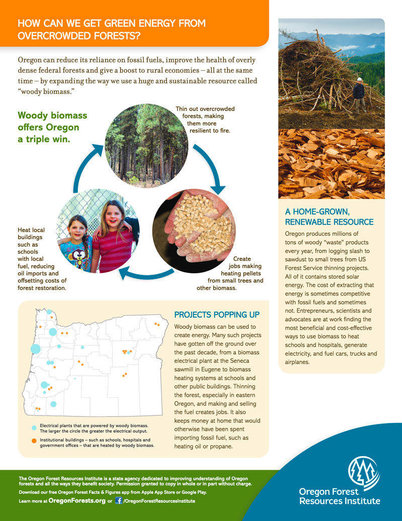 Fact Sheet: Biomass How can we get green power from overcrowded forests? This one-page fact sheet explores the “triple win” of thinning overcrowded forests to create renewable energy. Part of OFRI’s series of Forest Fact Sheets. FactSheet: Woody biomass