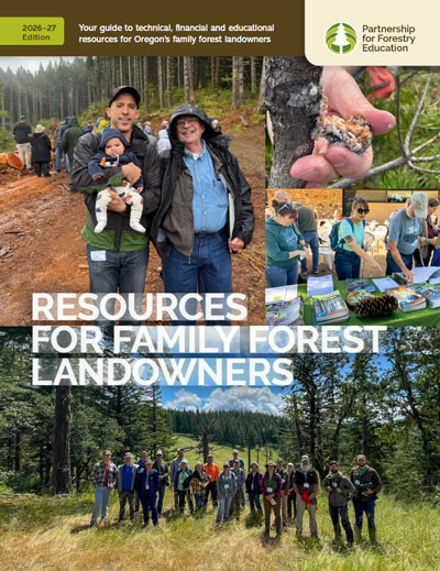 In Oregon, there are many sources of assistance available to forest landowners: expert technical advice, classes, grants and person-to-person counsel from peers – as well as online resources. This guide organizes these resources geographically and in other logical ways, for easy reference. Throughout the booklet are descriptions of each resource as well as handy contact information. Updated for 2026-2027.